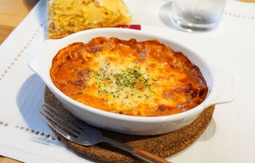 ミニラザニアシートとソースを混ぜて焼くだけで、人気メニューの「ラザニア」が簡単に作れます。